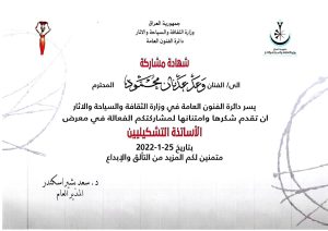 بدعم وتوجيه من الاستاذ الدكتور رزاق شعلان عكل مدير المركز ، وتوجهه نحو الانفتاح على المؤسسات الحكوميه والفنيه شارك التدريسي من قسم النبات والبيئه المدرس وعد عدنان محمود في معرض الاساتذة التشكيلين العراقي الذي نظمته دائرة الفنون العامة  في العاصمة بغداد  يوم الاحد الموافق 25/1/2022، بمشاركة نخبة من الاساتذة العراقيين المعنيون والمهتمون الفن التشكيلي وجاء المعرض بدعم دائرة الفنون العامة وحرصها على مواكبة الفنون على نطاق الفنون العالمية ، ومنا نتمنى التدريسي التوفيق والنجاح لرفد حركة الفن بكل ما يدعمها ويجدد المفردات الفنيه التشكيلية .