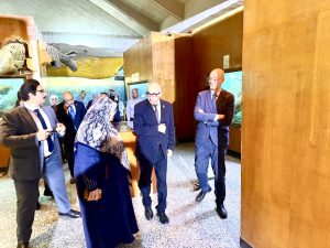 في اطلالة مميزة تشرف مركز بحوث ومتحف التاريخ الطبيعي/ جامعة بغداد، بزيارة السيد رئيس جامعة بغداد الاستاذ الدكتور بهاء ابراهيم انصاف المحترم برفقة السفير الفرنسي و عميد كلية اللغات الاستاذ الدكتور علي عدنان مشوش، اليوم الاحد ٢٣ تشرين الثاني ٢٠٢٥ ، استقبلته مديرة المركز الاستاذ المساعد الدكتورة هناء هاني عبد الحسين مع رؤوساء الاقسام , تفقد خلالها قاعة المعروضات في مركزنا وعبر في حديثه على ضرورة الاستمرار بدعم قاعة المعروضات من خلال استخدام أدوات العرض الحديثة مع مواكبة التطور العلمي في هذا المجال و لاسيما النماذج الاحيائية ، التي تحقق زيادة في اعداد الزائرين من خلال توفير الاجواء المثالية للعرض التي تسر وتجذب الزائرين من مختلف الفئات العمرية ، كما اطلع على مكتبة المركز التي تعد من اكبر المكتبات العلمية في الشرق الأوسط لما تقتنيه من مصادر عالمية مهمة في مجال الاختصاص على الاقسام العلمية في المركز (قسم الحشرات و اللافقريات و قسم الاسماك و قسم الفقريات و قسم النبات و البيئة) و تعرف على مهام كل قسم.